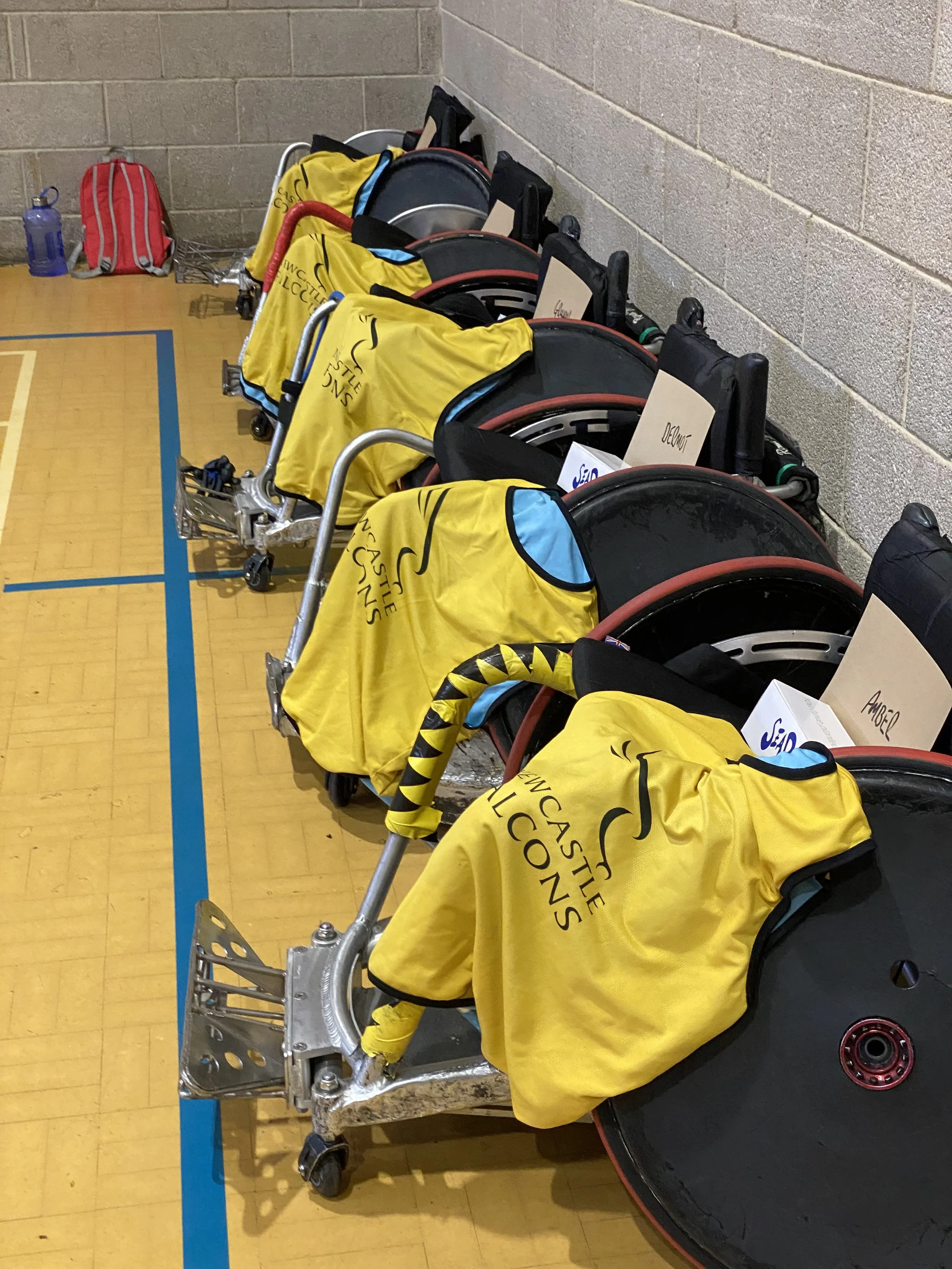 I was met by a very happy and friendly Layth at the front door and he wheeled me into the arena and introduced me to the amazing Mick and Adam. Mick and Adam are a fabulous double act. Mick is an ex pro rugby player who is very warm and welcoming. Adam is also an ex rugby player and the current Newcastle Wheelchair Rugby 5’s Coach.