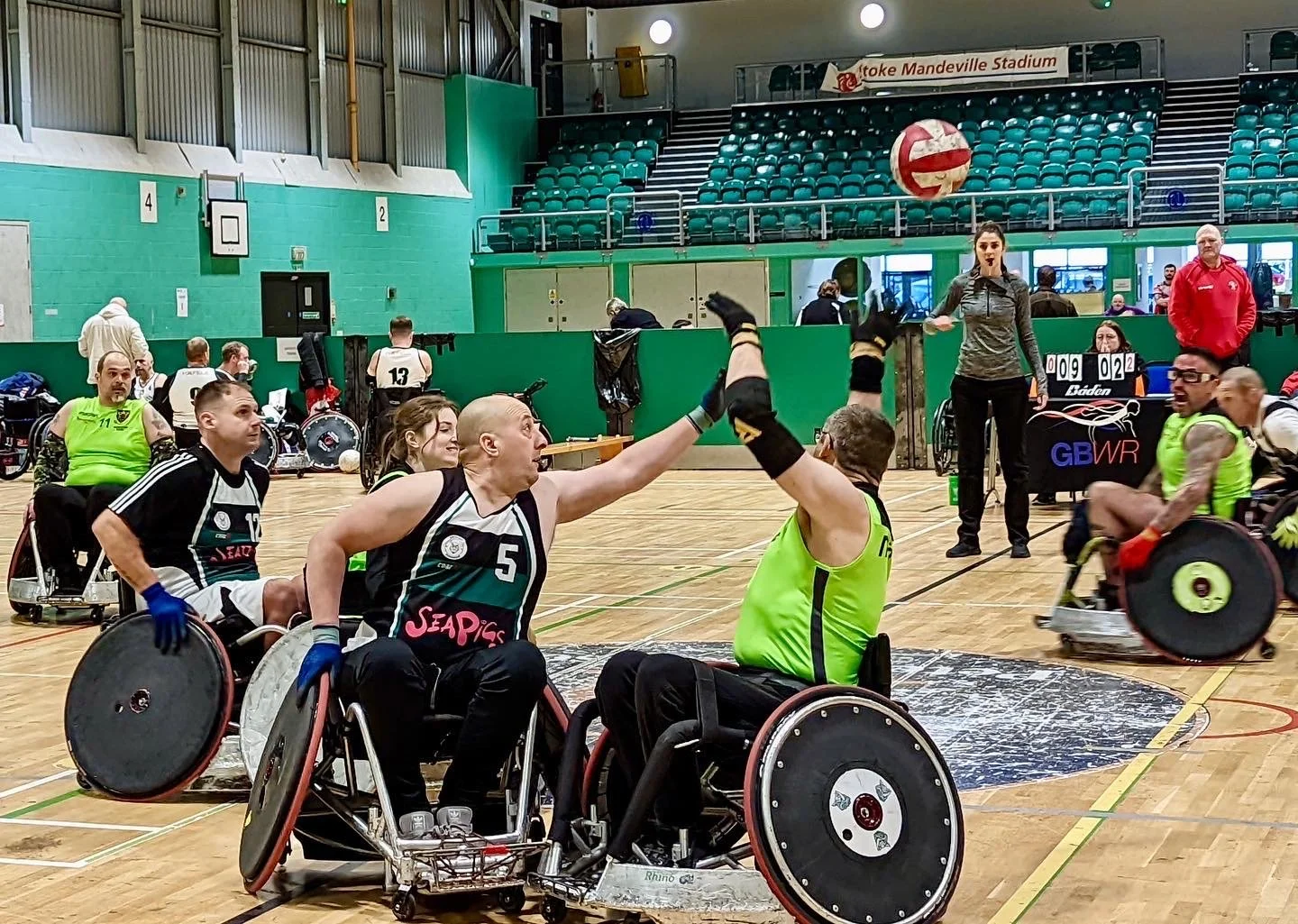 The North East Barbarians Wheelchair Rugby Club competes in Championship League of the National Wheelchair Rugby Fives competition at Stoke Mandeville Stadium.