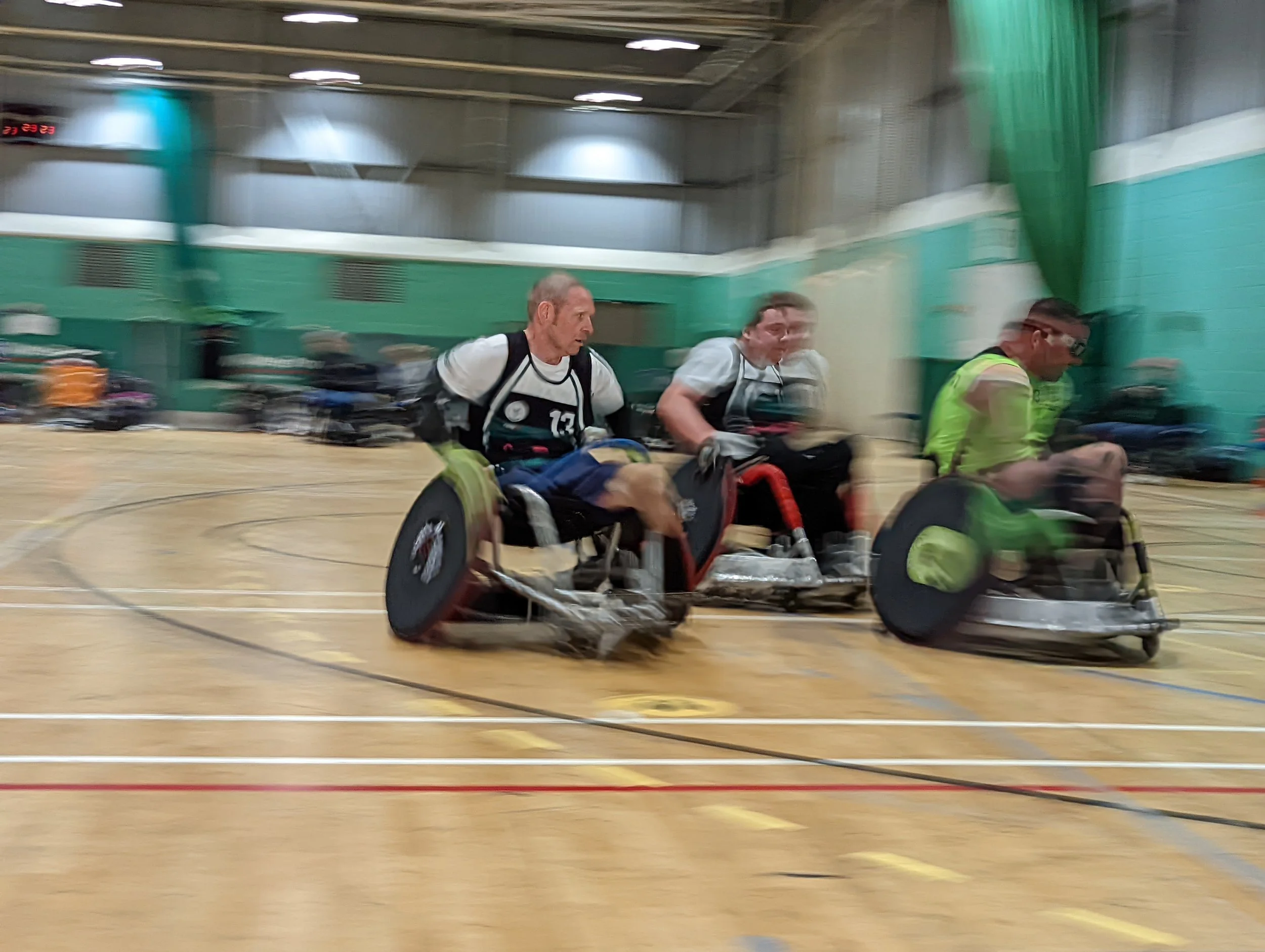 The North East Barbarians Wheelchair Rugby Club competed in the second weekend of three, in the national Wheelchair Rugby 5’s competition. This is the game between the North East Barbarians and the Solent Sharks.